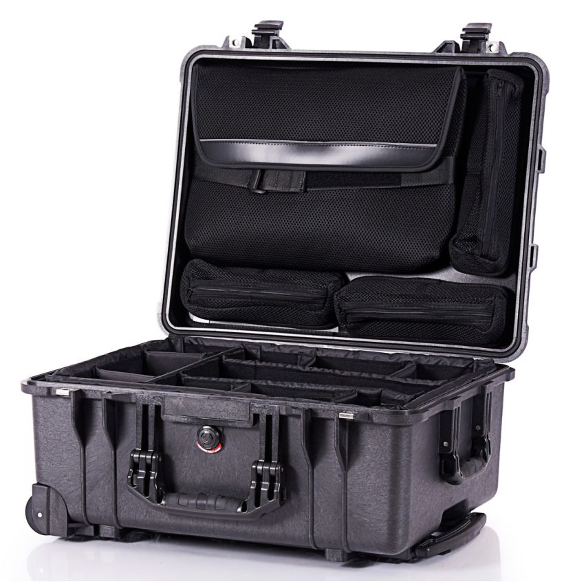 PELI™ Protector Cases er en række kasser der er bygget til ubegrænset holdbarhed. Disse robuste cases er både støvtætte og vandtætte og har en indbygget automatisk trykudligningsventil der sikrer at hvad end du har i casen, så kan du udsætte din PELI™ Protector Case for alle verdens elementer vel vidende om at det du har i casen er uberørt. Denne række cases kommer i en enorm mængde af størrelser og former der nok skal passe til hvad end du skal have i den. Mange af dem kan fås med- eller uden skum og nogle vil også kunne tilbydes med divider set. Denne PELI™ Protector Case kommer med et trækhåndtag samt hjul og et specialindrettet divider set.