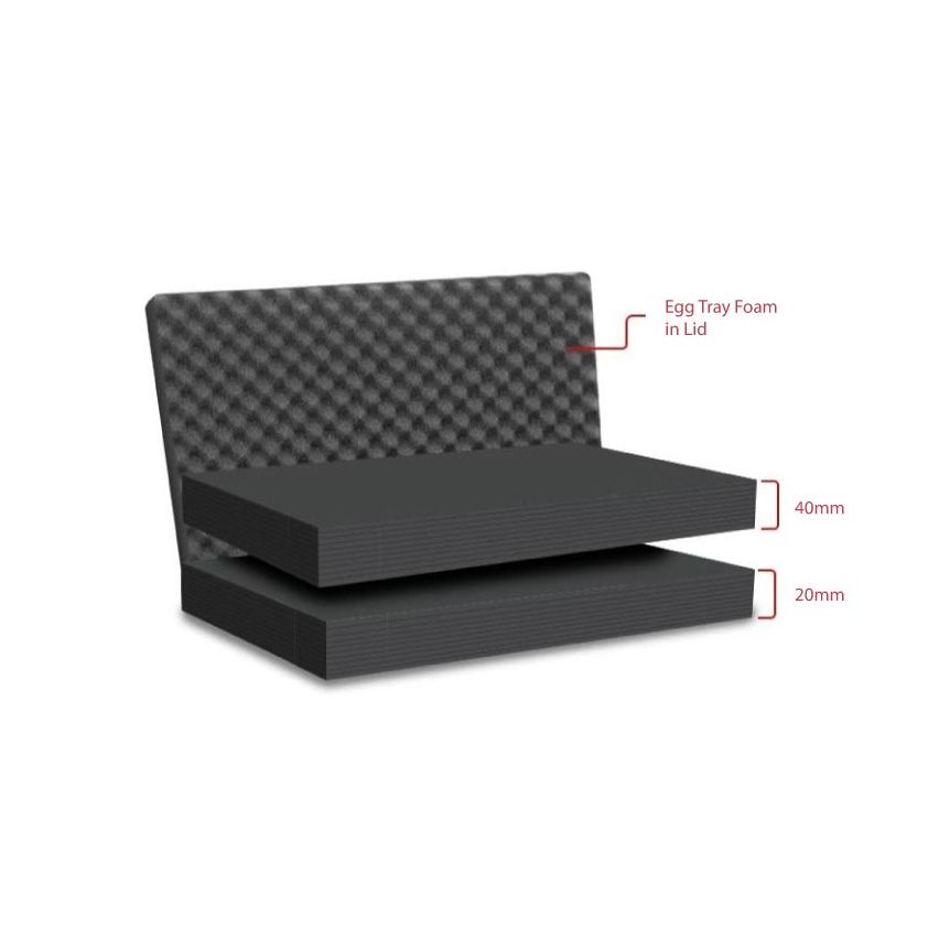 The Multilayer Foam for EVA 200-100 is a 3-Piece foam set consists of 1 layer of egg crate foam for the lid, 1 x 40 mm layers of Multilayer Foam, and 1 x 20 mm layer of Multilayer Foam.