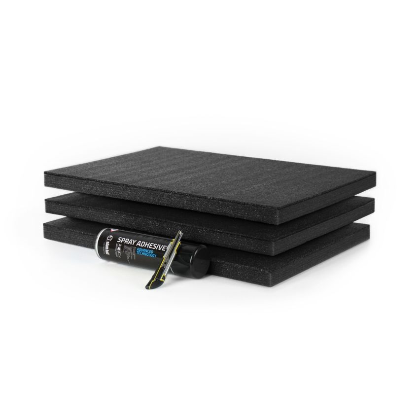 Black Multilayer Foam Customization Bundle – 3-Pack (600 x 400 x 30 mm) + Spray Adhesive + Precision Foam Knife