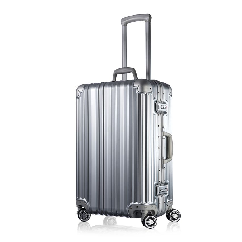 Opgrader din rejseoplevelse med vores elegante, aluminiumskuffert, en fusion af stil og holdbarhed. Det rillede ydre bidrager ikke kun til det moderne udseende, men styrker også dets robusthed.