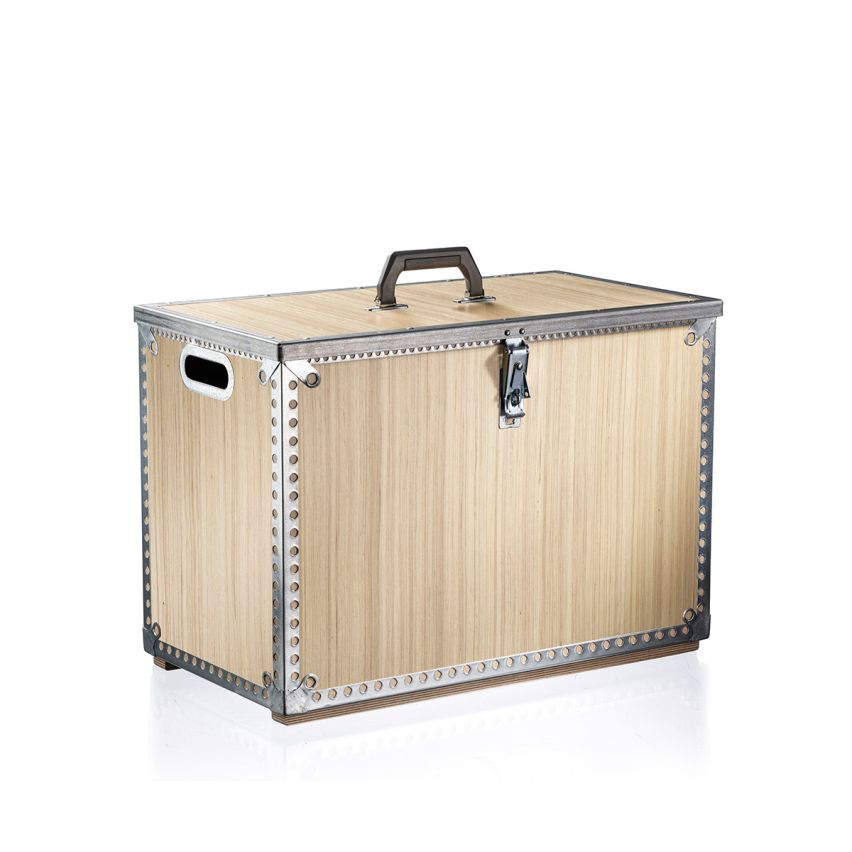 Woody Box™ er en kasse produceret af høj kvalitet, vandfast birkekrydsfiner som er forstærket med stærke metalbånd, bæregreb og hængelåsoverfald - af stål!