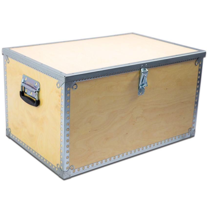 Woody Box™ er en kasse produceret af høj kvalitet, vandfast birkekrydsfiner som er forstærket med stærke metalbånd, bæregreb og hængelåsoverfald - af stål!